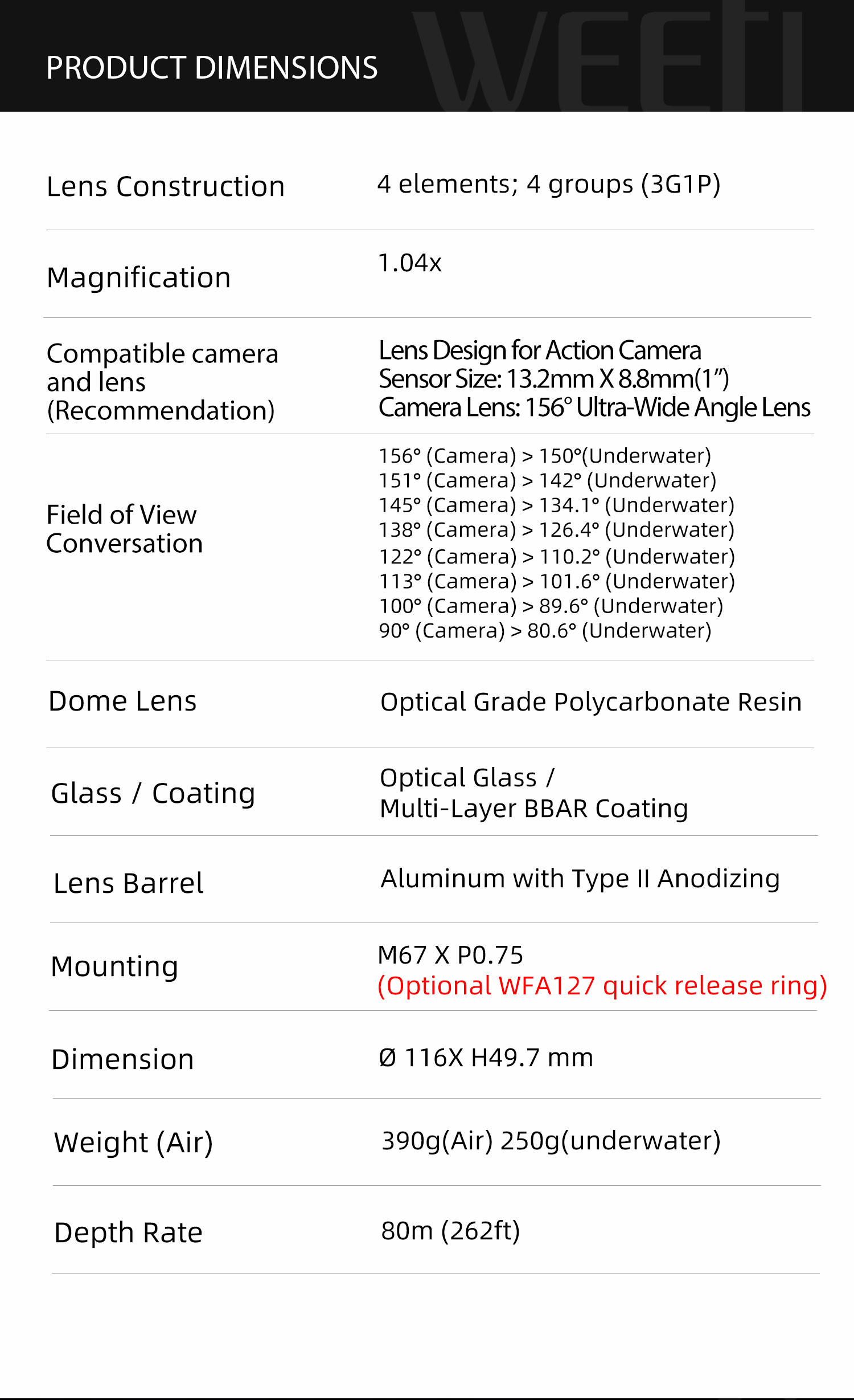 Wide Angle Lens AOI 0.73x 140 Degree UWL03 BK