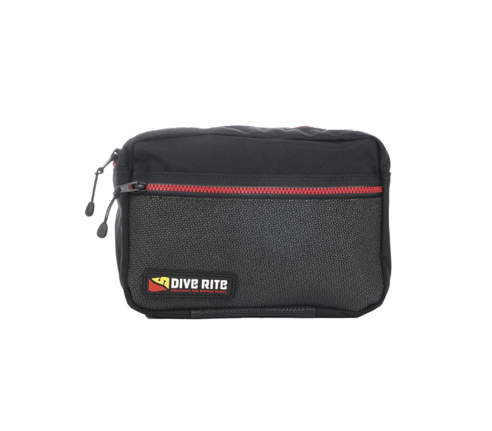 Dive Rite’s 2-Zip Sidemount Bellows Pocket is a large bellows pocket that allows a sidemount diver to carry everything they need for a dive including: spools, notebook, back-up lights, line arrows, and more. With two compartments, smaller items can be separated in the front with larger items in the main compartment. A 36-inch (92 cm) looped lanyard on the inside of the large compartment allows the diver to attach tools and gear so items can be quickly deployed without the fear of losing one. The back of the pocket allows for several mounting options including two 1-inch metal D-rings for butt mounting and webbing straps for waist mounting. The Sidemount Bellows Pocket also allows for single clip mounting using a double bolt snap. With an armored SuperFabric front, the Sidemount Bellows Pocket is extremely rugged. A heavy duty mesh panel allows for quick draining.