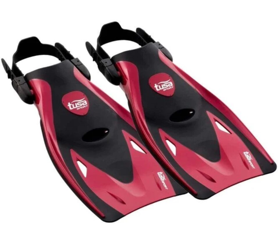 The UM-31 Visio Tri-ex mask is a revolutionary 3-window design that offers an ultra-wide 168° panoramic view. This amazingly wide viewing angle is achieved by the incorporation of domed side windows and the significant reduction of frame structure around the lenses, increasing the field of vision by dramatically over traditional masks. The UM-31 mask gently conforms to the contours of your face. Constructed with pure silicone, this mask has been crafted for divers who want a wide front lens combined with a low volume design. The USP-250 dry snorkel features TUSA Hyperdry Elite dry top technology (pat p) that stops water from entering into the snorkel, a drain chamber and purge valve for easy clearing, and pure silicone swivel and mouthpiece. The UF-21 fins have an advanced multi-flex long blade design, thrust channel technology for superior propulsion and the foot pocket is made with a soft, durable compound designed for comfort. The open-heel design allows for quick and easy size adjustment and the silicone heel strap enhances comfort and durability. This fin is engineered to provide a lot of power for its compact size. The fins are lightweight and ideal for travel. Comes standard with a travel bag.