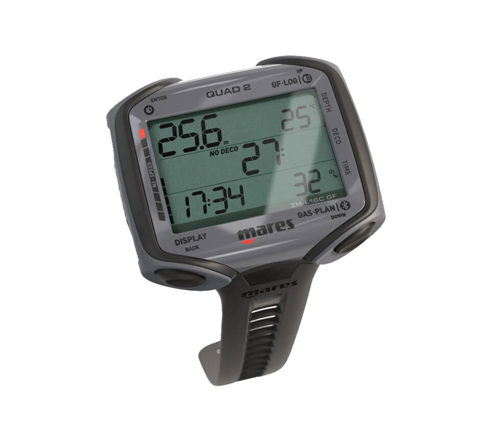 The Mares QUAD 2 dive computer combines advanced technology with user-friendly design. Featuring a crystal-clear display, Bühlmann ZH-L16C algorithm, multi-gas compatibility, and integrated Bluetooth, it ensures precision and safety. With 100-hour log capacity and a replaceable battery, it’s the ultimate companion for unforgettable underwater adventures.