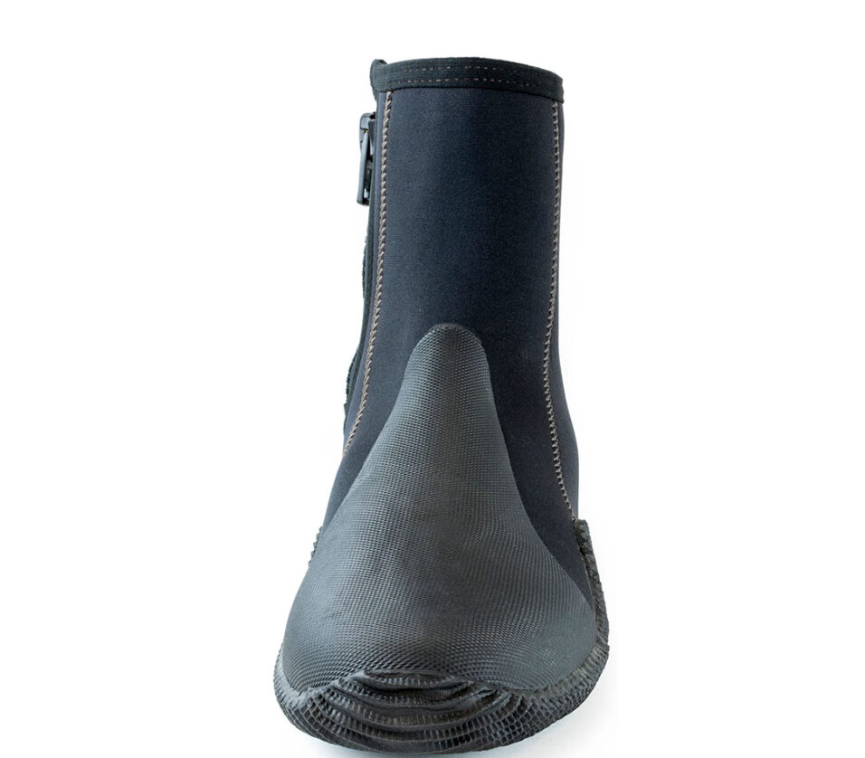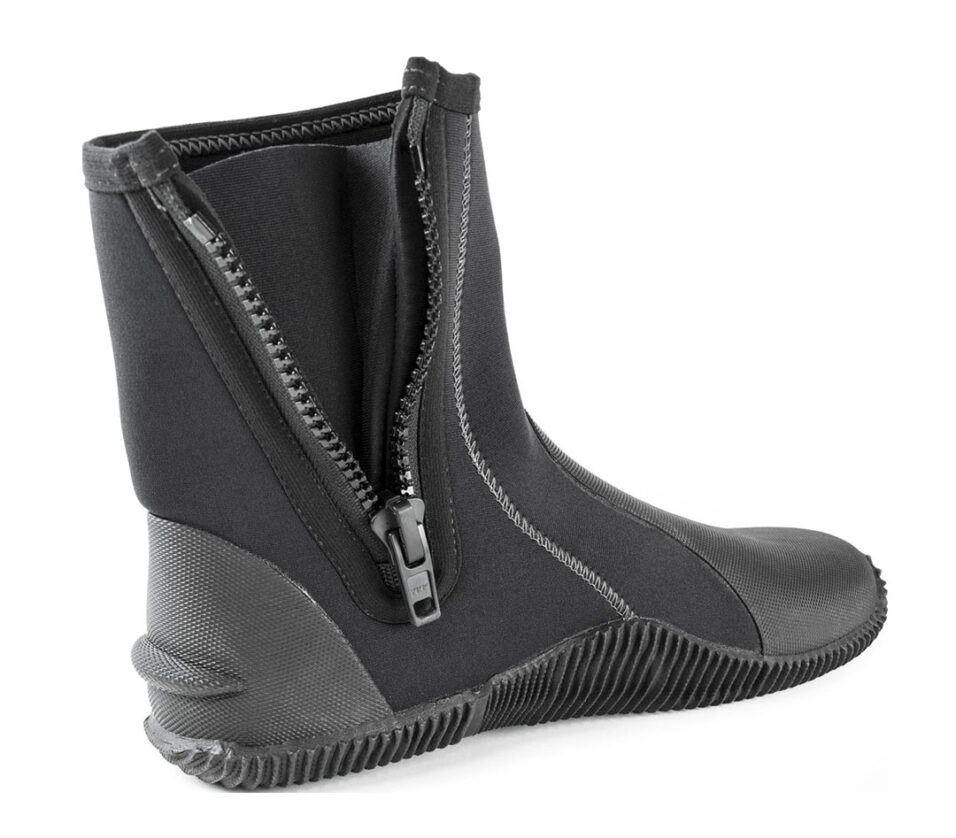 These boots are suitable for any kind of water sports to keep the feet warm. The back of the heel has a special design that fits perfectly with open heel fins for scuba diving. The small boss is used to prevents the slipping of the fins strap. Both the toe and the heel are reinforced with long-lasting rubber and provide protection against wear and tear. They are made from soft, double-lined neoprene and have a practical zip from the sole to the ankle, making them easy to slip on and off. Water seepage is reduced to the minimum thanks to a thin flap seal under the zip, which acts as an effective barrier against any water that may seep through the zip. A strong non-slip molding covers the entire sole. Available in 3,5 mm 5 mm and 7 mm neoprene thickness