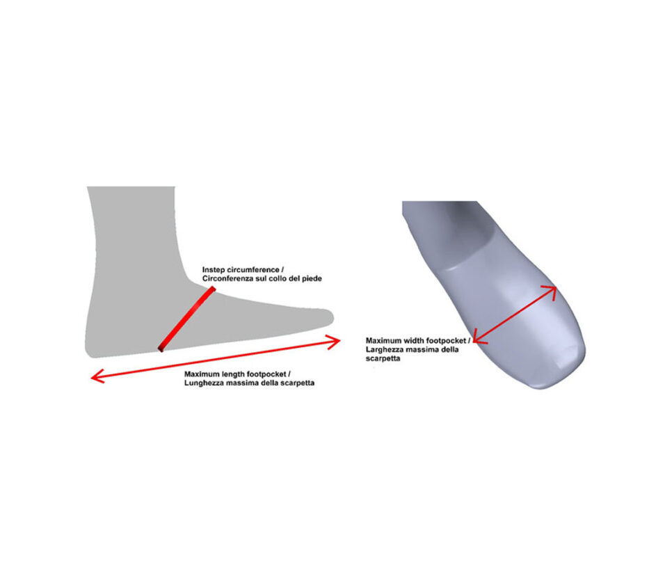 The footpockets, made by mould, in high quality natural rubber, are ergonomic and comfortable even when "deliberately tight" worn to minimize power loss and maximize thrust; they are designed with a high foot-blade inclination.