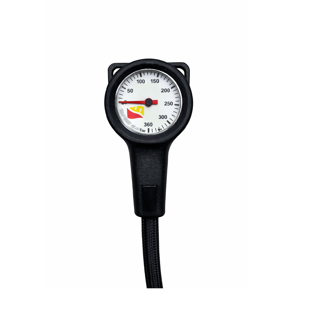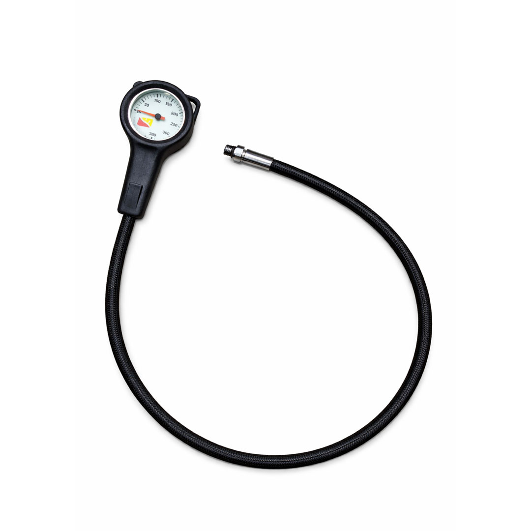The Low Pressure Hose BCD 20cm / 8 inch is a robust rubber bcd hose with a standard 3/8" UNF male thread and quick release female thread connector to join your Inflator BCD to 1st stage.