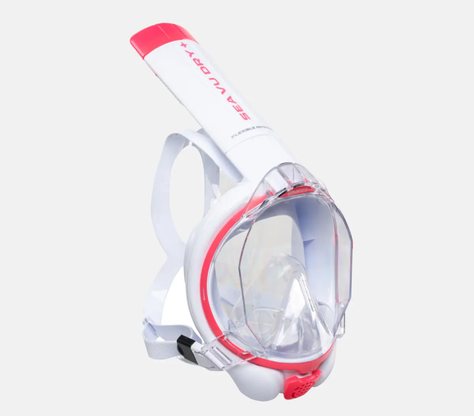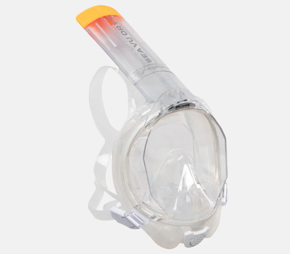 The Sea Vu Dry mask is a full face mask for allowing you to breathe effortlessly through your nose and mouth. A high-end product providing super performance, the Sea Vu Dry snorkel mask boasts great quality materials and an attractive design. This full-face snorkel mask is practical and comfortable to wear, for safe diving adventures. The Sea Vu Dry + model features transparent surfaces, allowing your face to be seen clearly. The frame is ergonomically designed and feels light on the face. The Sea Vu Dry + mask allows for optimal breathing, thanks to a special system which minimizes CO2 accumulation and makes it safe to exchange and eliminate gases. The Sea Vu Dry + mask has large air flow sections, and is equipped with anti water leaking technology. Vision capability is excellent, and the Sea Vu Dry + model includes combined flat beds for a 3D effect without optical distortion. These are the key features of the Sea Vu Dry + snorkel mask: - Ergonomic full-face snorkel mask. - Transparent surfaces for a clear view all over your face - Optimal breathability through nose and mouth - Technology designed for minimal CO2 accumulation. - Safe gas exchange and elimination. - Presence of large air flow sections. - Perfect vision thanks to combined flat lenses for a 3D effect How to use the Sea Vu Dry: - Place the mask on your face, stretch the headband over the back of your head. - Pull on the ends of the headband so that the mask fits snugly over your face. If you pulled too much, release the headband by using the buckles, the readjust accordingly. - To remove the mask safely, loosen the headpiece using the buckles and return it to the front of your face. - When entering the water from the boat, keep the mask close to the face and hold it with one hand. The dive should not be headfirst or face down first. - Blow through your nose if you feel the mask pressed against your face by water pressure. - If the lenses fog up, treat their inner surface with an anti-fogging solution, then rinse them with water. Care and maintenance of the Sea Vu Dry : Follow the advice and instructions in the package insert. WARNING Product not suitable for children. For adults only (18 years old or older).Category | : | |