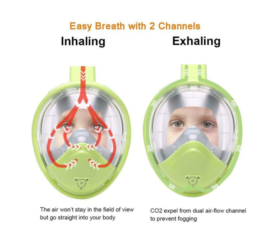 - NEW 180° PANORAMIC BROAD VIEW DESIGN & EASY TO USE: Ufanore full face snorkel mask gives you a complete unobstructed 180° view of all the life underwater. You can see in almost every direction. In addition, different from a curved Lens which makes everything seem to be farther away than normal, which is unsafe and will cause dizziness and headache over time, our snorkel mask is equipped with a different lens that brings you more comfort and reality scene.