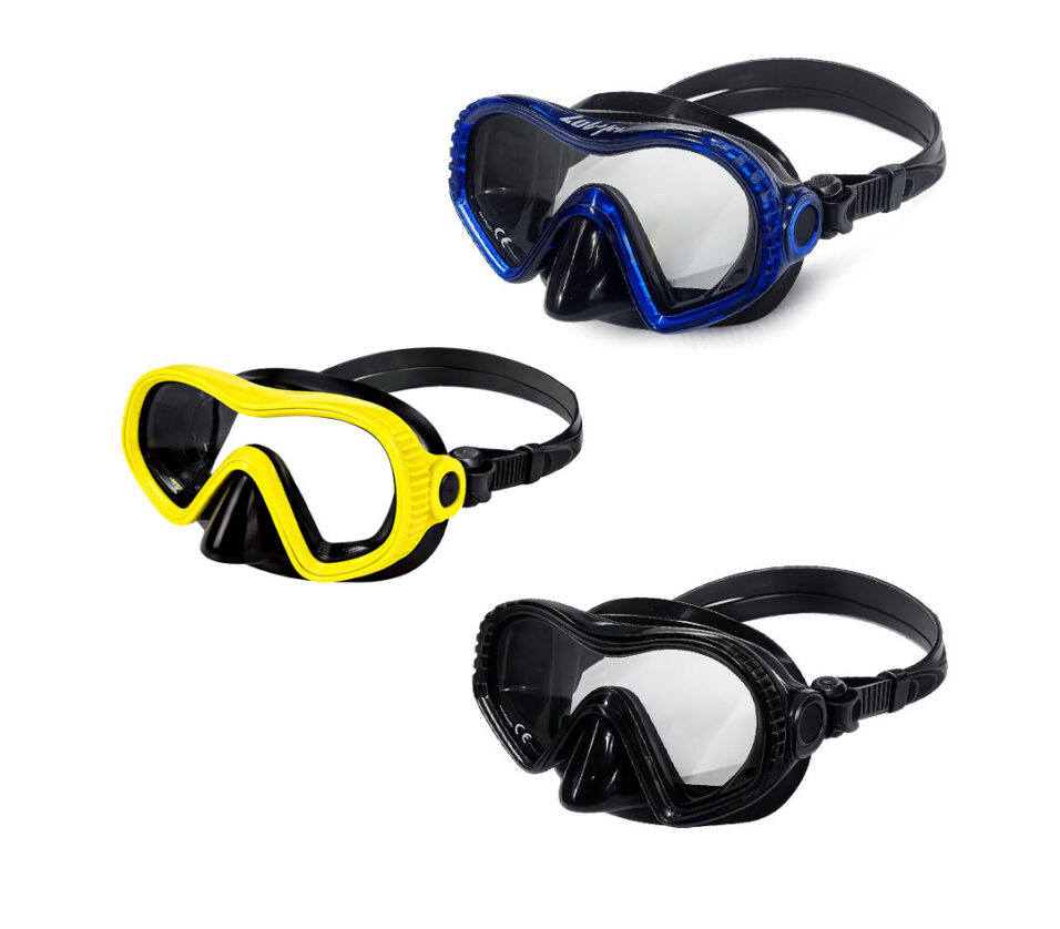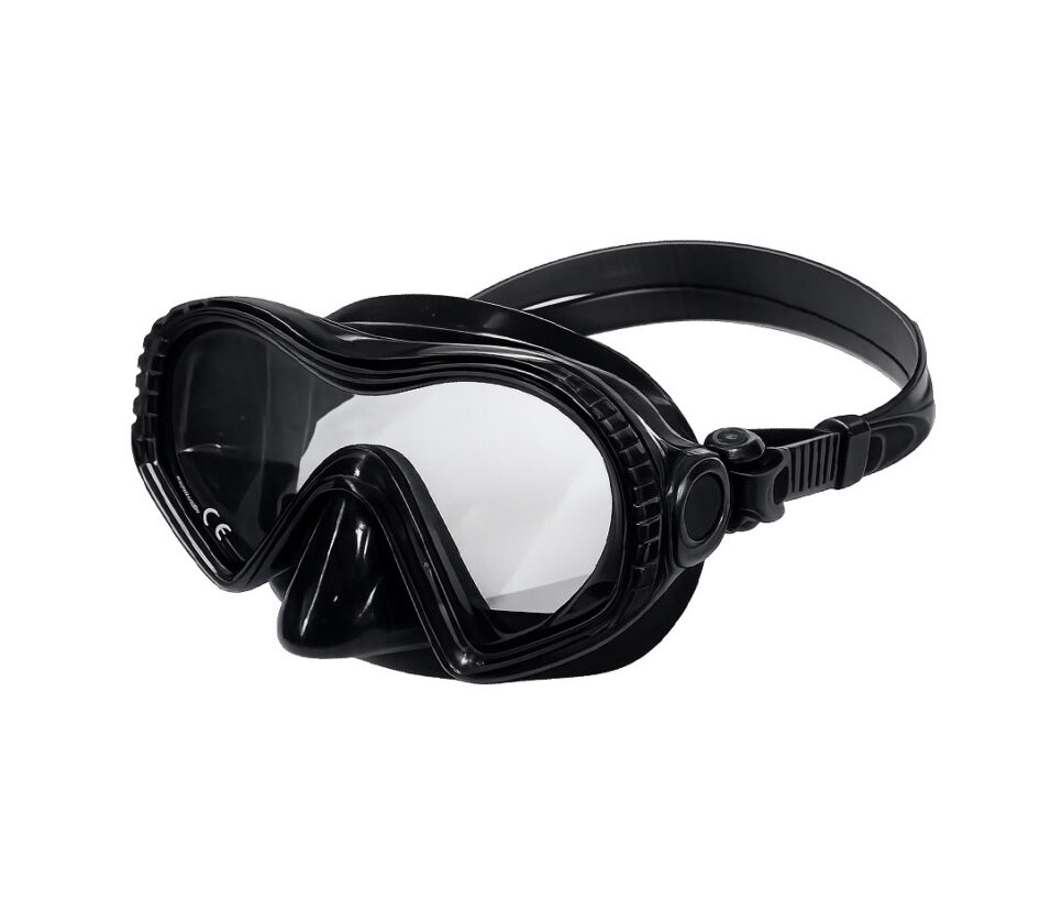 Comfortable frameless snorkel mask with a wide, clear single lens. Designed with a soft hypoallergenic silicone skirt that adapts to a wide range of facial profiles for a secure and comfortable fit. The large lens provides clear vision, while the adjustable strap is designed for comfort and ease of use.