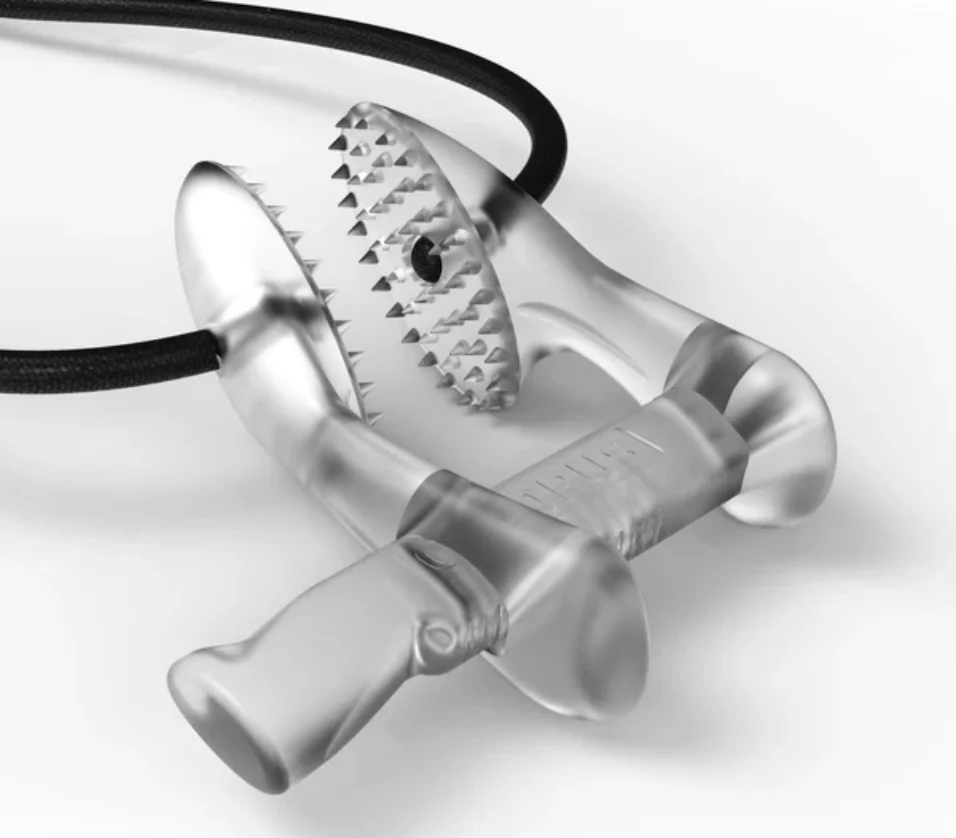 It is to ensure that the noseclip will stay positioned in the optimal zone that we have developed our two innovations: the micro-teeth and an adjustable elastic band.
