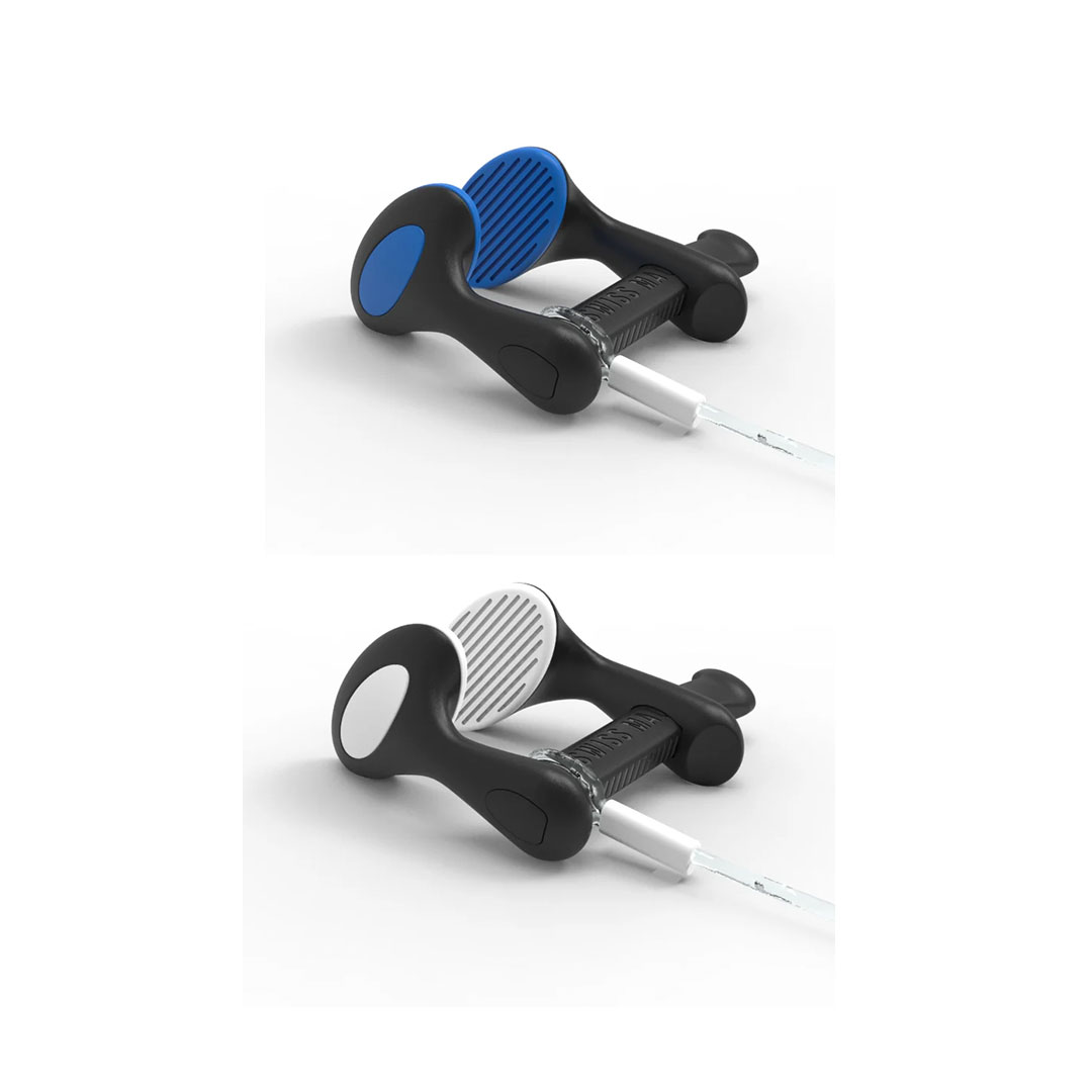 Patented nose clip to be applied on the mask. It allows both mask and ears clearing without using hands. Toggles leaning on the mask, are mounted on springs. When exerting more pressure, they slightly open allowing air flow. It fits all masks models. Neck lace included.