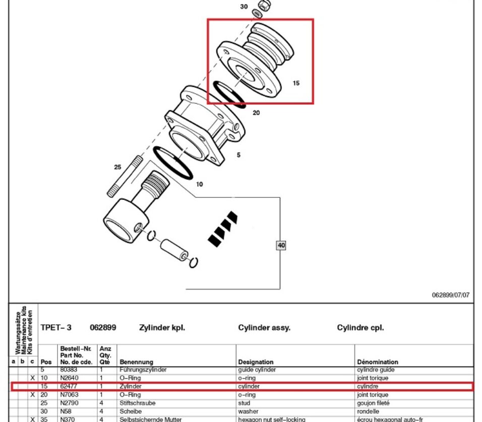 - Spare part for BAUER PE200-300, Piston guide cylinder 2nd stage.