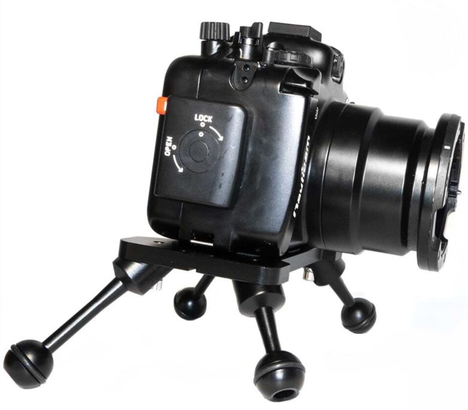 - Tripod plate that attaches to the bottom of the housing and provides four standard 1" ball mounts for tripod legs or other accessories.