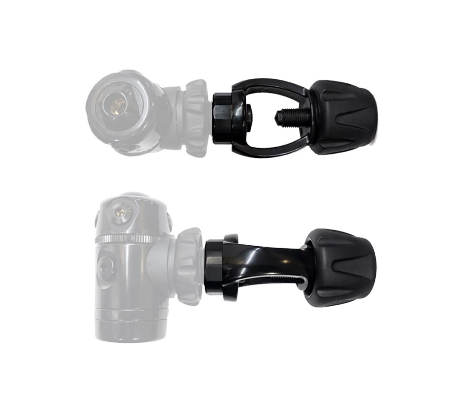 Use this spin-on adapter to connect any DIN fitting on a yoke-type cylinder valve. The DIN-to-yoke spin-on adapter is marked with a 232-Bar rating. Comes with black coated color.
