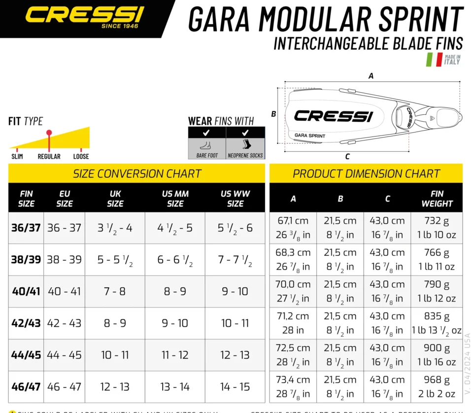 Semi Long Fins Full Foot Cressi Gara Modular Sprint Turbo