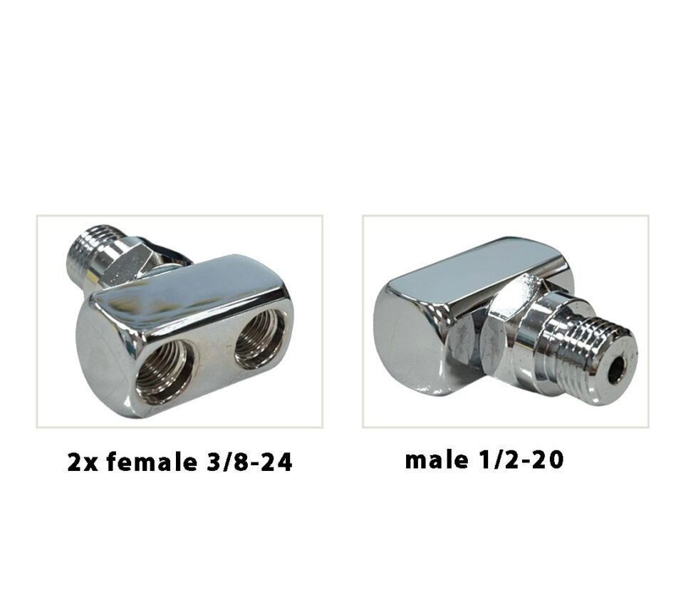 Product listSplitter Swivel Adapter Zeepro Male 1/2-20 To 2 Female 3/8-24
