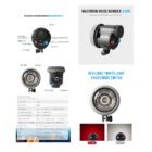 The Weefine WFS02 is equipped with two focus lights. The built-in modeling light automatically turns off and back on when taking a still photo to avoid over exposure.Focus light red dimmable in 10 steps (the corresponding power is displayed on the LCD-display)