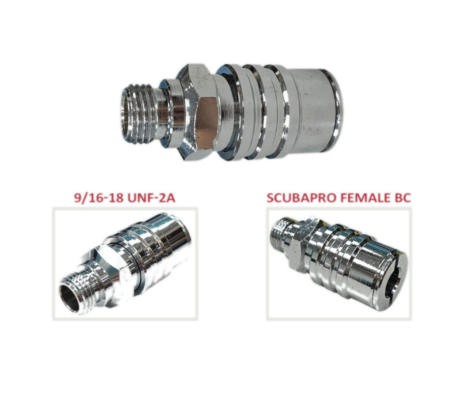 Adapter to converts 9/16 thread to SCUBAPRO/ZEAGLE/ATOMIC/SHERWOOD BC connection