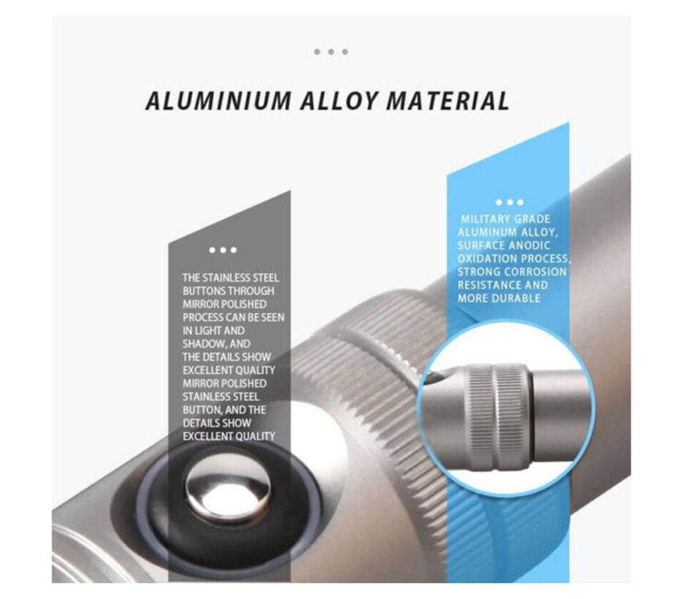 - Aluminum alloy material: military grade aluminum alloy, surface anodized, corrosion resistant and durable