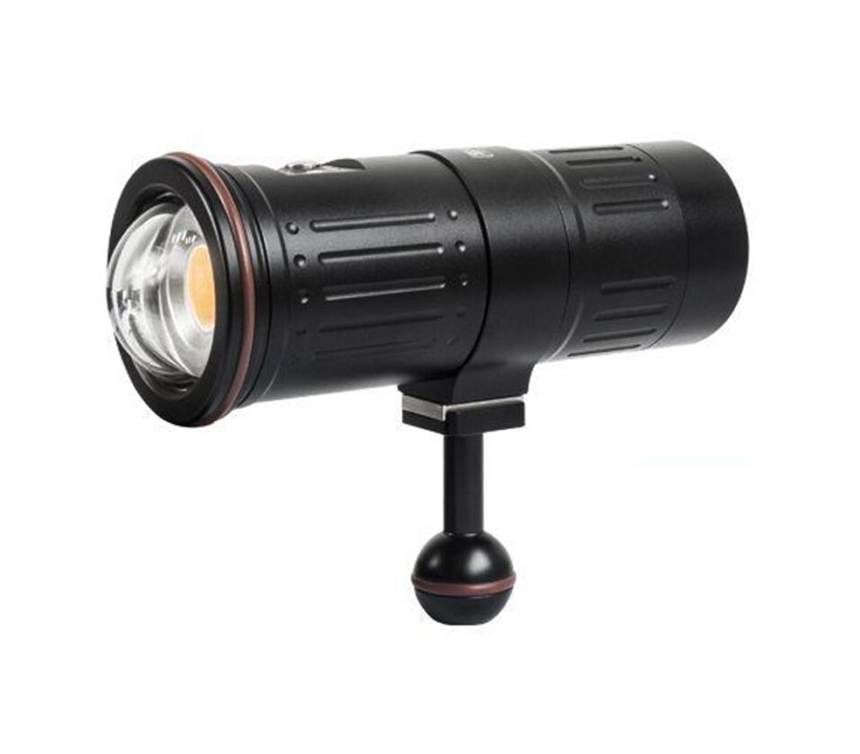 Scubalamp V4K, amazing new video & focus light. The V4K is equipped with one 20mm COB LED emitting a staggering 7600 lumen. Featuring two quick output levels, the V4K can dim from Turbo mode (7600 lm) to Normal mode (3800 lm) as well as steppless dimming from 100% to 10% to fine-tune exposure and extend battery life. This will make the corals glow like you have never seen before, definitely a show stopper!