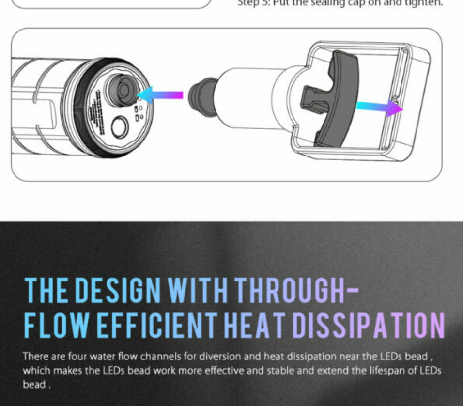 Ring indicator is applied on the dive torch with stainless steel press button control. It is convenient for the user to operate the diving equipment. The dive equipment is equipped with an underwater one-way dual-control safety exhaust valve, which highly enhances the safe factor under the extreme environment. The snorkeling gear has an Auto shut-off function and strobe function with Weefine brand new patent, which can satisfy the different needs of the user. There is a vacuum port that can better protect the dive torch safe, it can detect the diving torch whether is sealed before diving on land. There is another remote port that can make the user operate the scuba equipment easily by remote control.