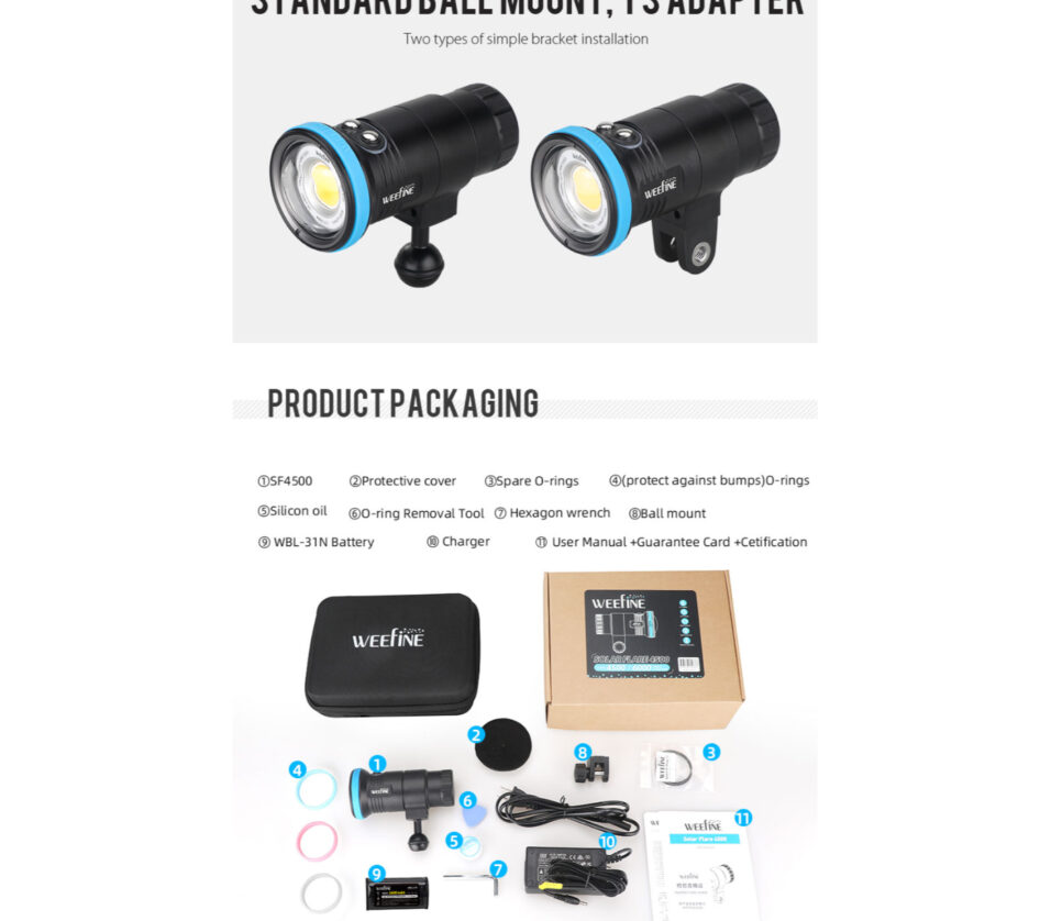 • Enhance Your Underwater Photography and Videography : For divers looking to take their underwater photography and videography to the next level, the Weefine Solar Flare 4500 is an excellent choice. Its combination of brightness, durability, and ease of use ensures that you capture every moment with clarity and precision.