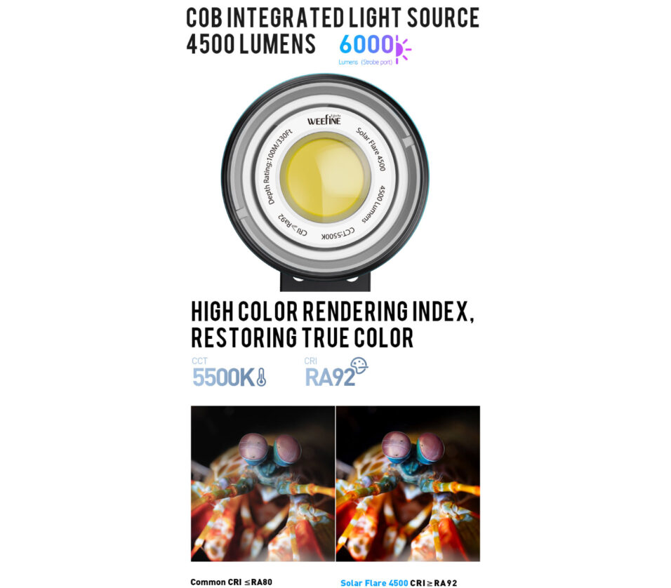 • Compact Design with Easy-to-Use Controls : Despite its powerful performance, the Weefine Solar Flare 4500 maintains a compact and lightweight design. This makes it easy to handle and mount on various underwater camera rigs. The intuitive controls are user-friendly, allowing divers of all experience levels to operate the light effortlessly, even with gloves on.