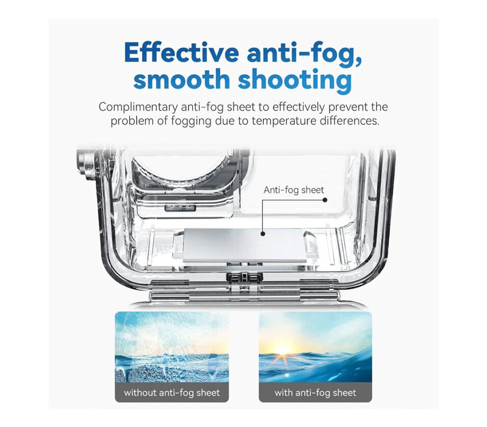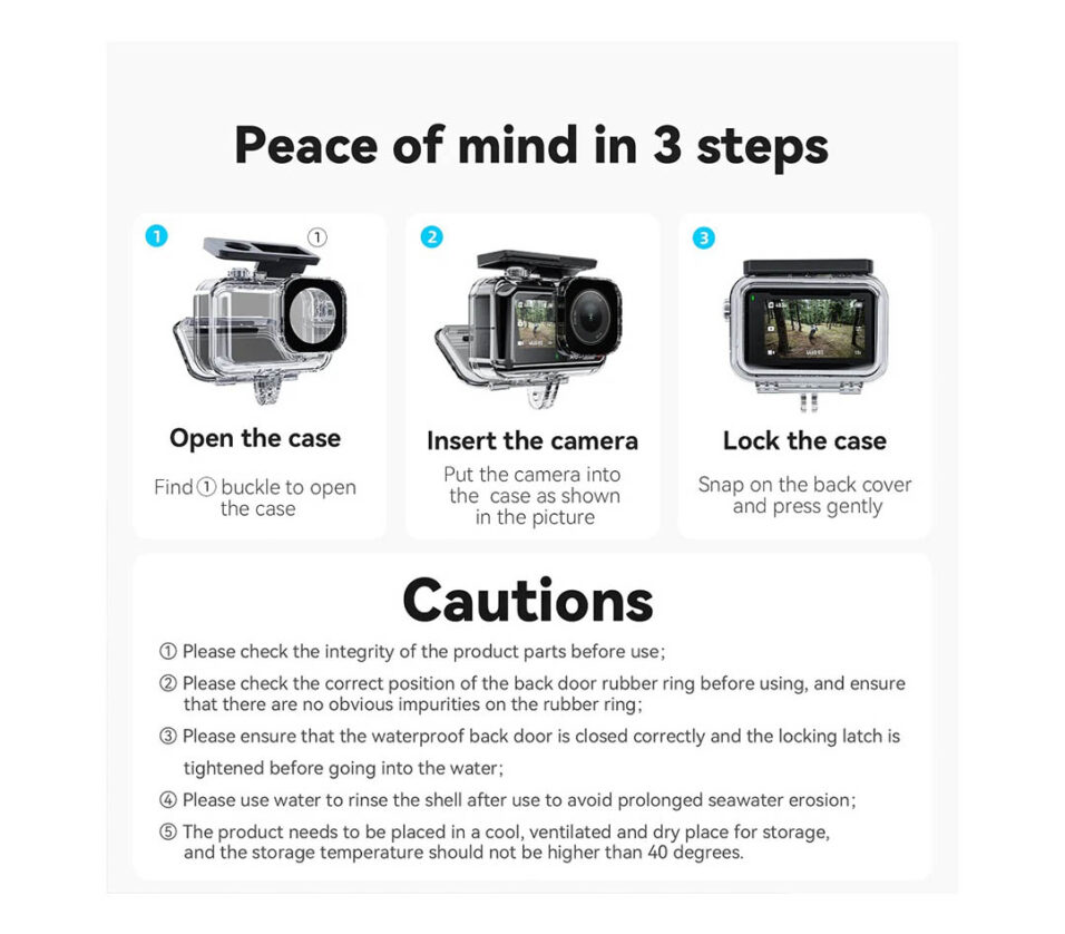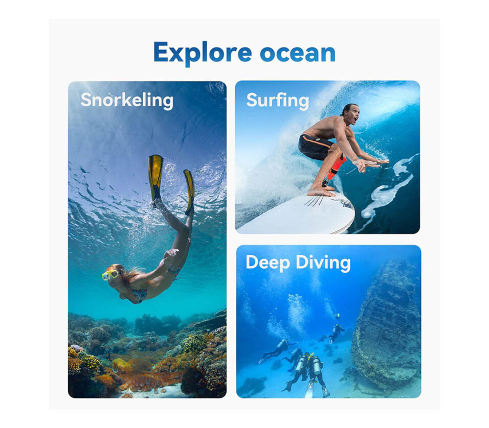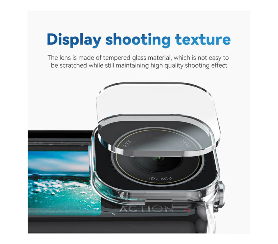 This casing is compatible for the DJI Action 3 4 5 camera. Waterproof, shockproof, and anti-fog are all fully owned by this casing. You can use it when doing water activities such as snorkeling, surfing, and diving. The recording results will look clear using the casing from Telesin.