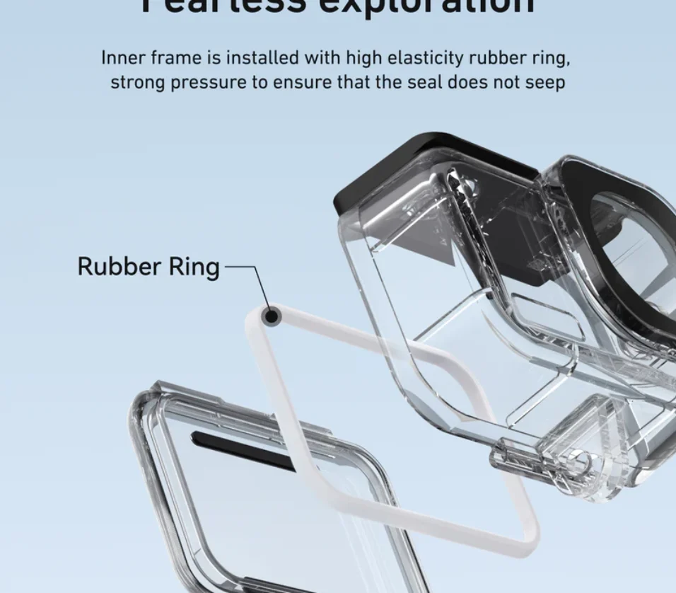 High-Elastic Rubber Seal: The case features a high-elastic rubber ring inside the frame to maintain a secure, leak-proof seal, ensuring your camera remains dry and safe even under high pressure.