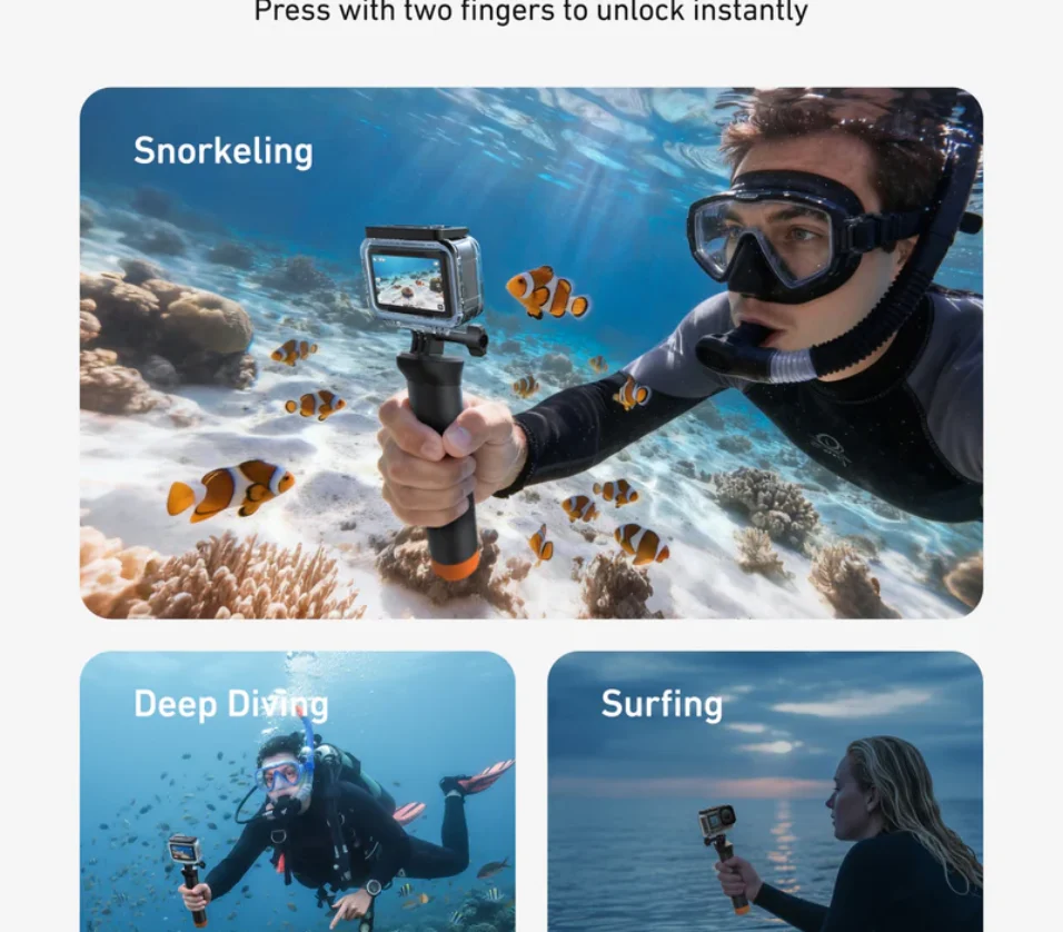 Tempered Glass Lens: The lens is constructed from scratch-resistant tempered glass, providing excellent durability while maintaining superior shooting quality. Perfect for capturing both underwater and above-water scenes with confidence.