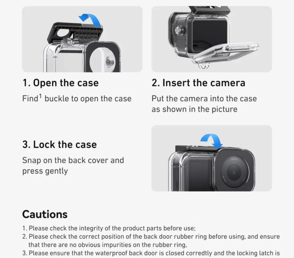 High Transparency PC Material: Made from high-transparency PC material with a light transmittance of 95%, this case ensures that the front and back screens of your camera maintain vivid colors and clarity during underwater playback and filming.