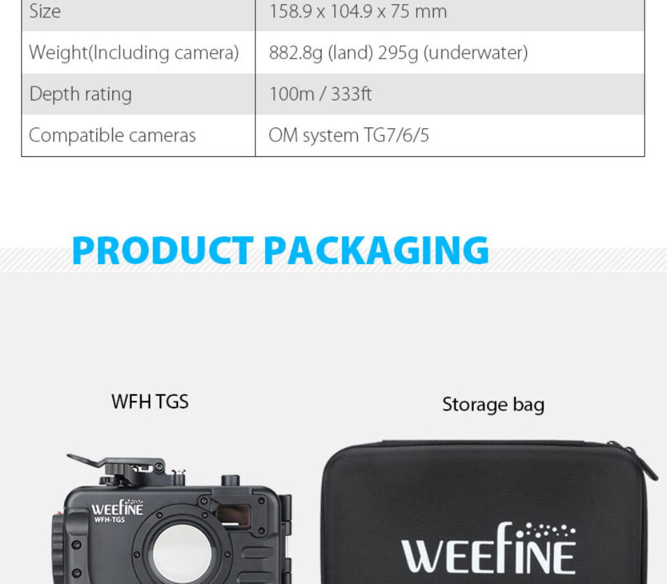 Underwater Case Housing Camera Olympus TG-5 TG-6 TG-7 Aluminium Weefine WFHTGS
