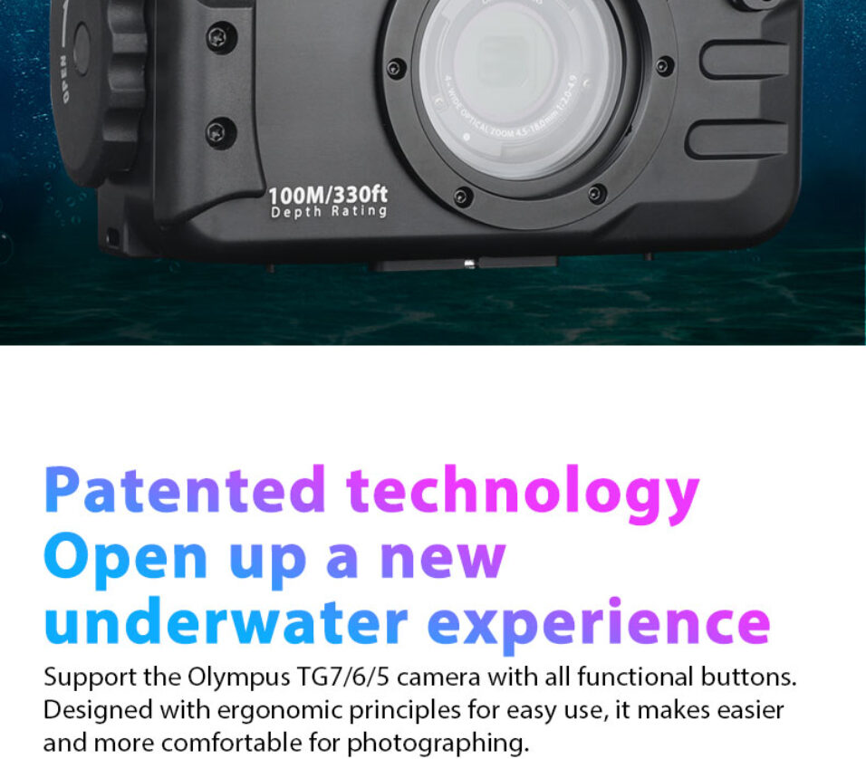 Besides the OM-Tough TG-7 camera, this housing is also usable for Olympus Tough TG-5 & TG-6 camera. It's designed with ergonomic principles for easy use and handling for photographing.