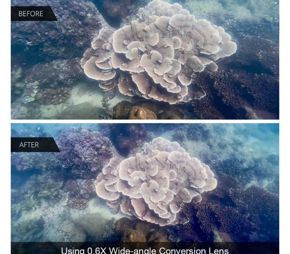 - 0.6X underwater wide-angle conversion lens