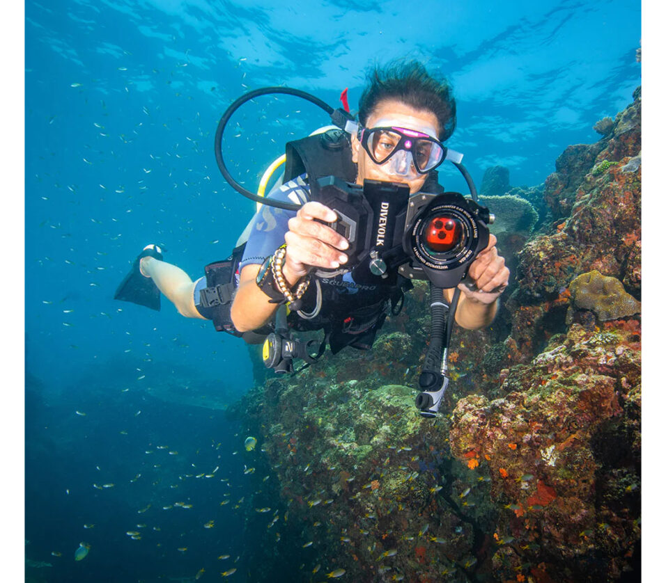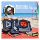 - Wide-angle lens to expand the view underwater and correct edge distortion