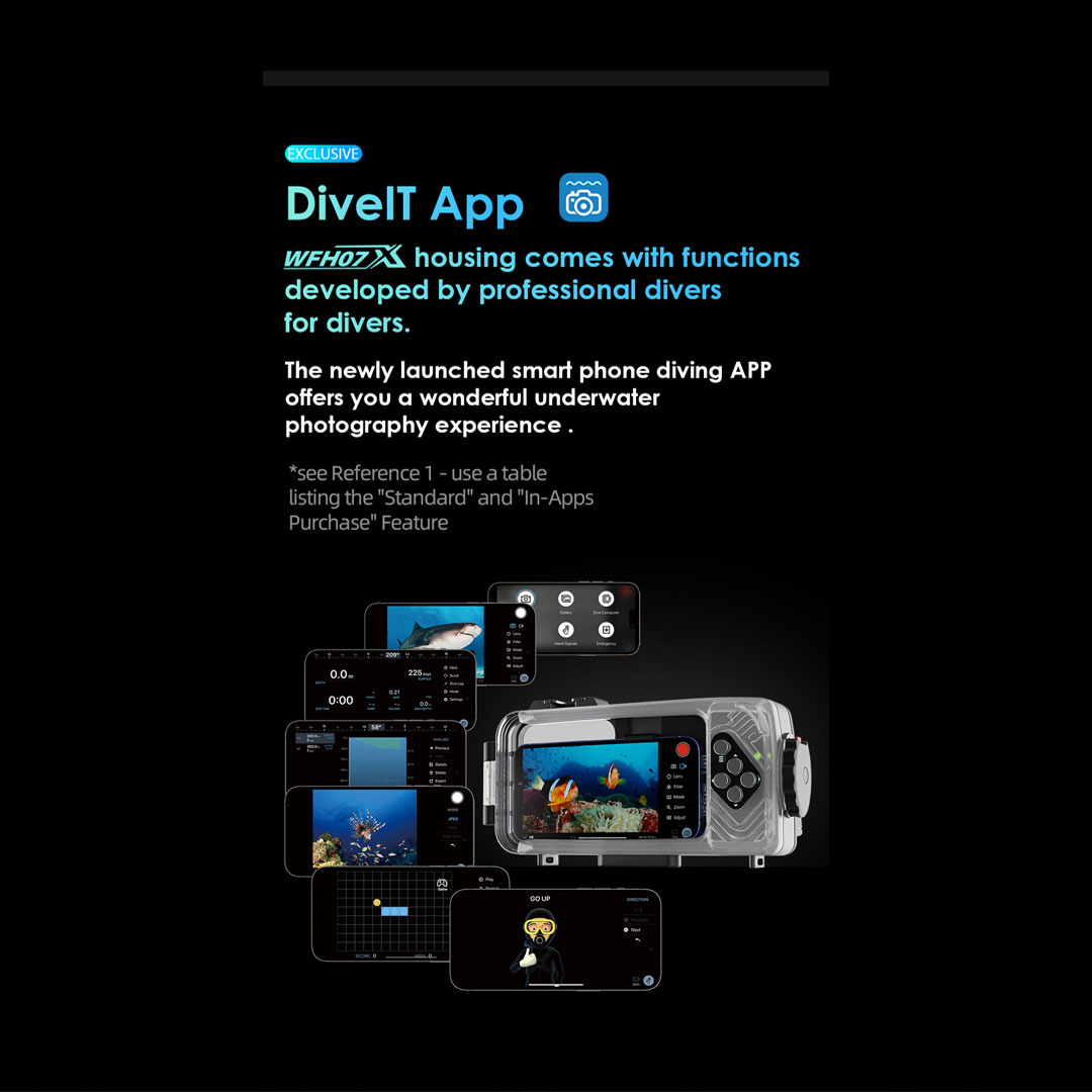 SportDiver app support phones running current or previous operating system, which is subject to change as determined by Apple and Google. Important: Some settings may not be available depending on the phone make/model. Easy control – Large shutter lever and rear control buttons for easy operation, even with dive gloves Access popular camera settings – Get creative with your shot by using advanced camera settings. Note: Some settings may not be available depending on the phone make/model. Lens selection and background blur setting only available with multi-lens iPhones.