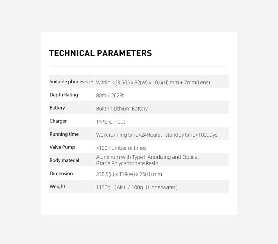 The Weefine WFH07X Universal Smartphone Housing is a precision-engineered underwater smartphone housing designed for divers who require reliability, functionality, and compatibility across various smartphone models. Constructed mainly from aluminum alloy, the housing provides durability and depth-rated protection for smartphones used in challenging underwater conditions.Underwater Case Housing Handphone Weefine with Depth Sensor WFH07X