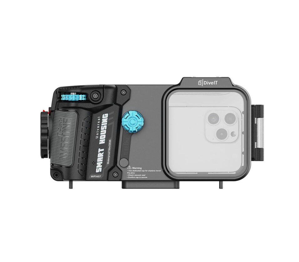 The Weefine WFH07X Universal Smartphone Housing is a precision-engineered underwater smartphone housing designed for divers who require reliability, functionality, and compatibility across various smartphone models. Constructed mainly from aluminum alloy, the housing provides durability and depth-rated protection for smartphones used in challenging underwater conditions. The WFH07X is part of Weefine’s smart housing series, featuring the brand's signature innovation – the built-in automatic vacuum system. This system ensures airtight sealing before the dive, adding an extra layer of safety and peace of mind. Additionally, the housing features fiber optic flash signal support, which allows for synchronized external lighting, enhancing underwater photography performance.Key Features of the Weefine WFH07X Underwater Smartphone Case: