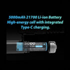 - Battery: High-capacity 21700 (3.6V 5000mAh), 90+ minutes runtime, quick swap design