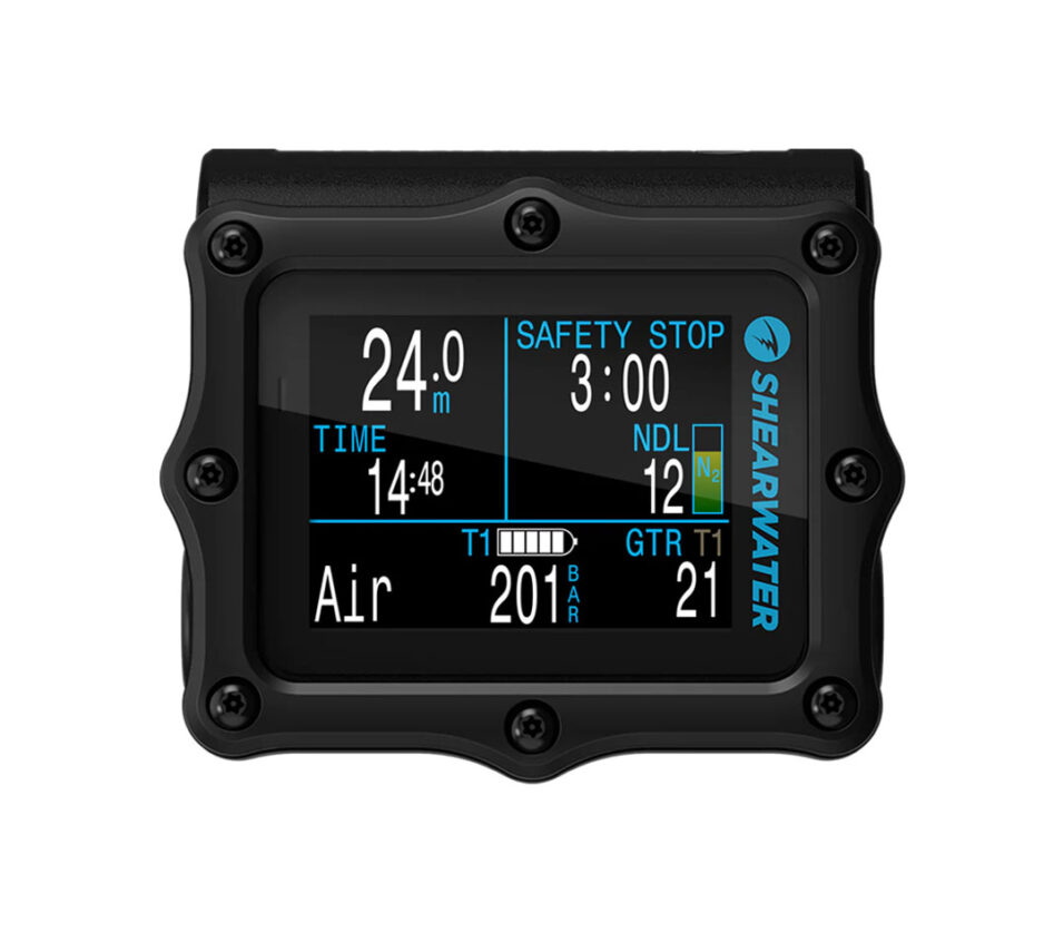 Air integration with up to four Shearwater transmitters allows room to grow from a first computer to a powerful, proven advanced technical diving solution. This is delivered using the trusted and easy to find user-changeable single AA battery and familiar ergonomic compact form factor.