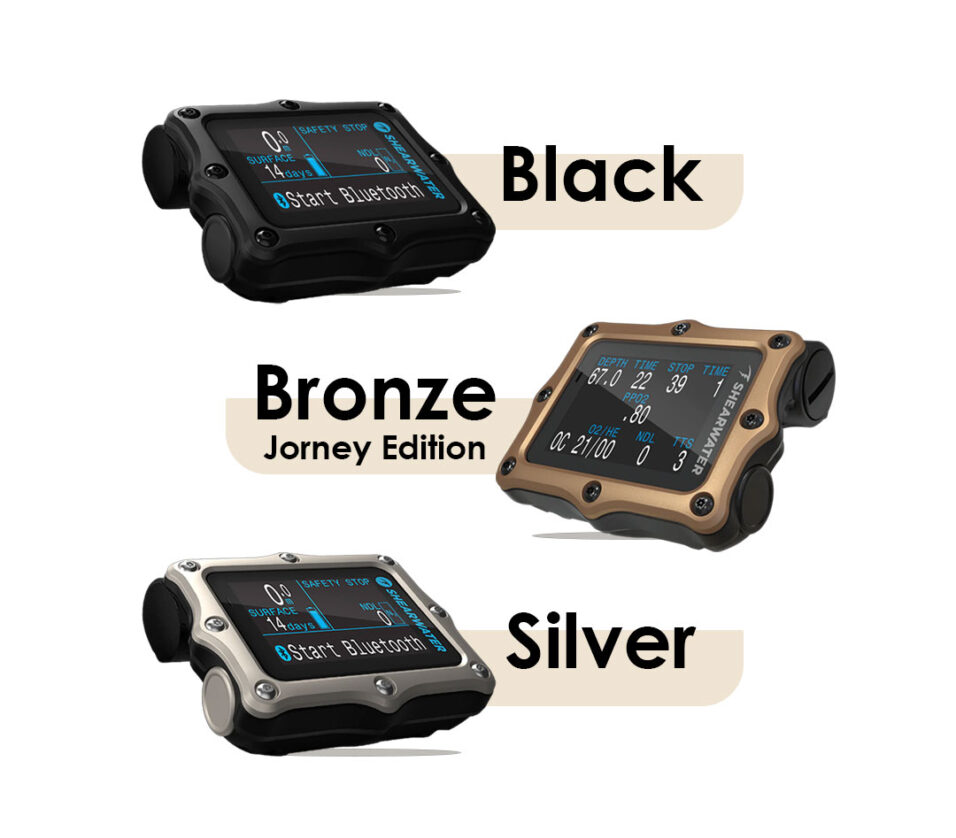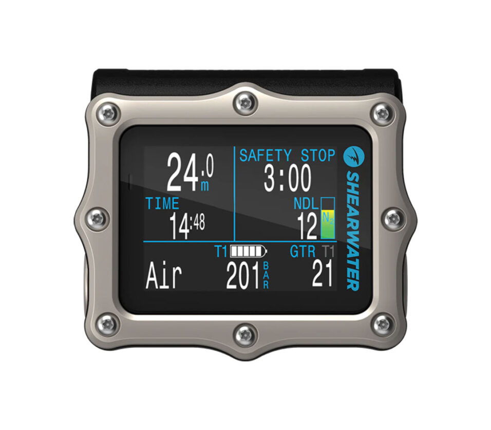Air integration with up to four Shearwater transmitters allows room to grow from a first computer to a powerful, proven advanced technical diving solution. This is delivered using the trusted and easy to find user-changeable single AA battery and familiar ergonomic compact form factor.