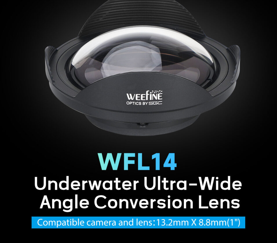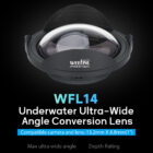 This WFL14 ultra-wide-angle underwater conversion lens is designed for use with action cameras and smartphones featuring 1-inch sensors. This interchangeable lens significantly enhances optical quality, even when using the cameras' super wide-angle mode (150°). It delivers straighter lines, improved contrast, and overall more stunning images.