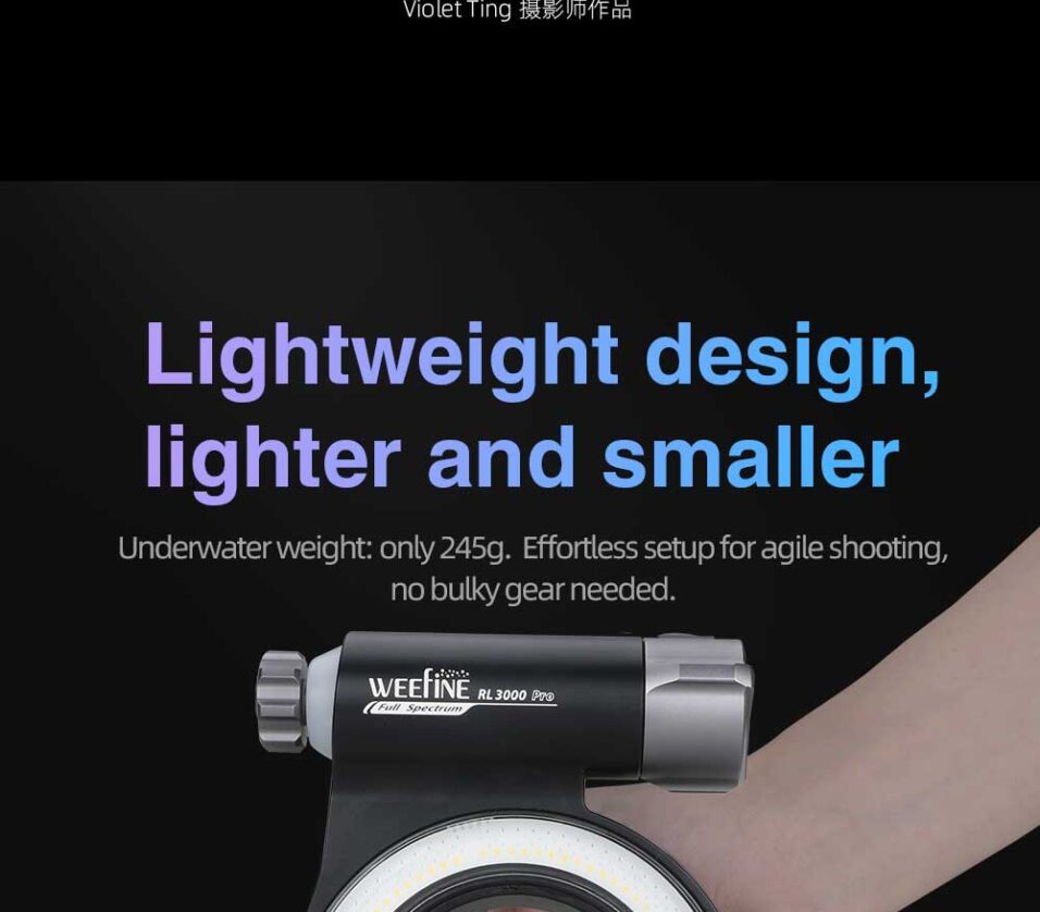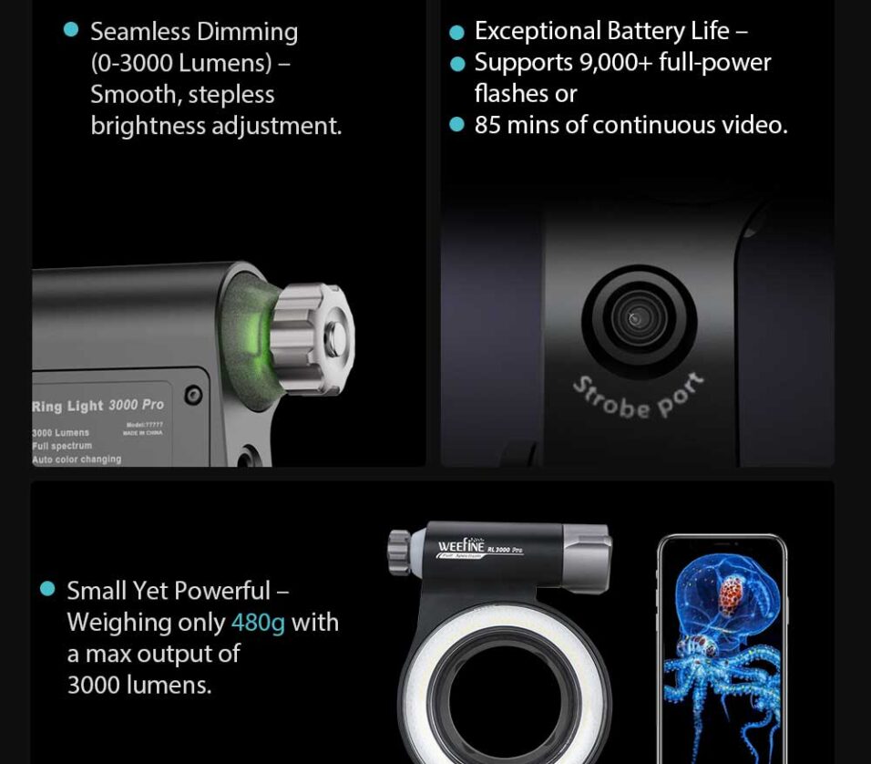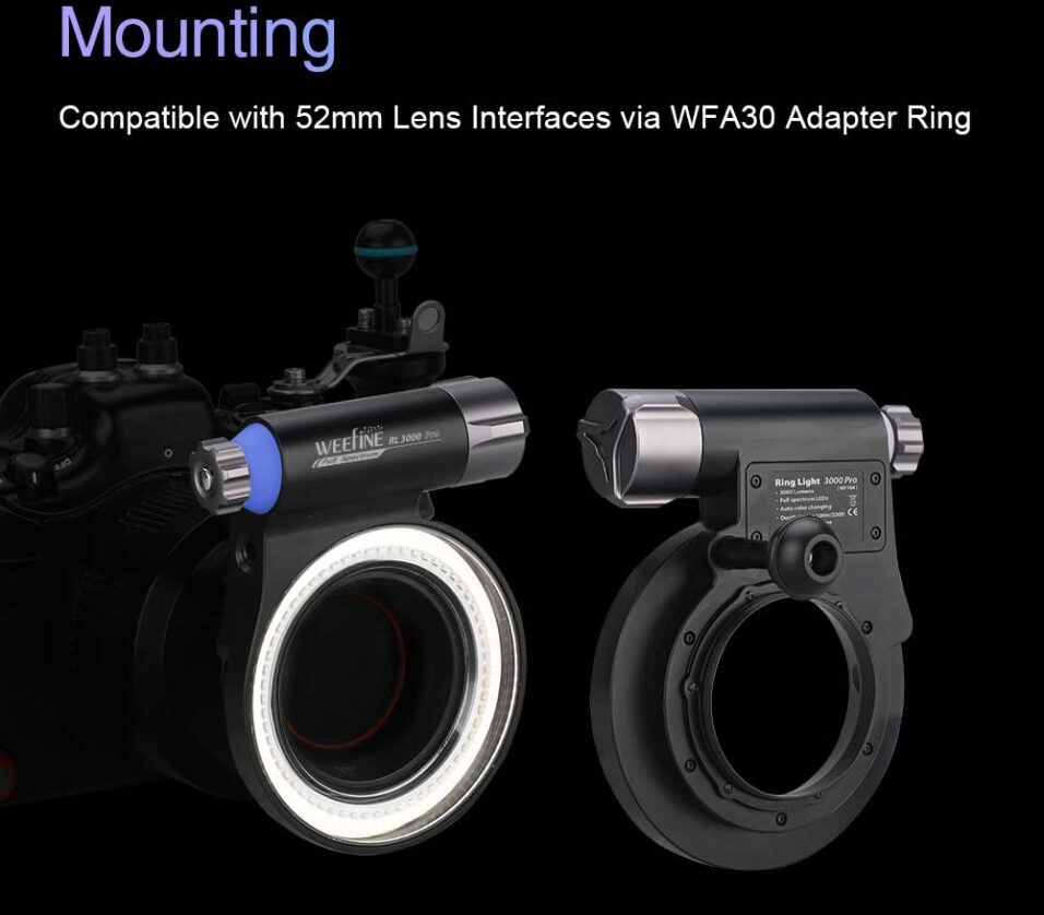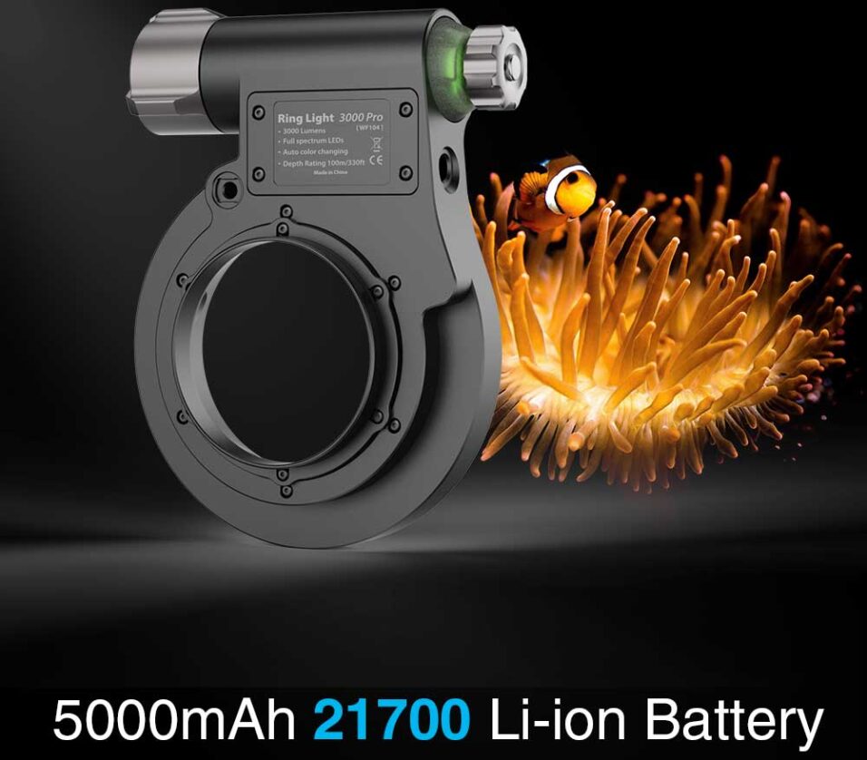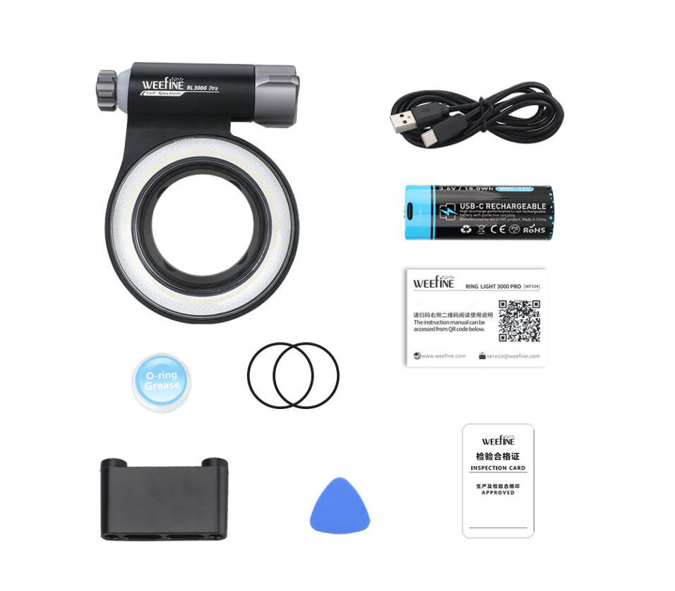 The Weefine Ring Light 3000 (also known as the Weefine Light 3000 Pro) is a powerful, all-in-one macro photography lighting tool that mounts seamlessly to compatible underwater camera systems.