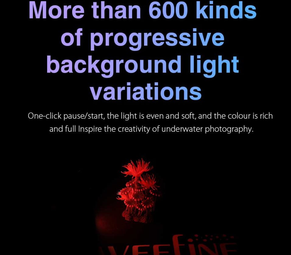 - Easily toggles between lighting modes to suit different scenes and marine life.