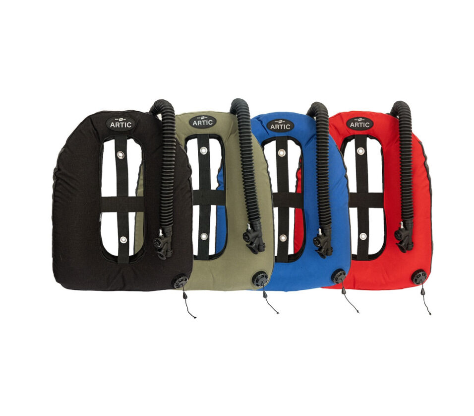 The Artic Wing was designed thanks to popular request to tackle the most challenging cold water environments and boasts 45 pounds of lift. Built for thick wetsuits or drysuits with heavy insulation, the Artic easily manages the additional lead required, providing stability and safety even in the iciest waters. Whether you’re exploring any extreme cold region or your diving needs require more lift, the Artic has you covered. Featuring an innovative 3D contoured design, these wings hug the cylinder closer than ever before, offering precise lift placement for improved trim underwater and optimized surface flotation. The Artic Wing is made of a durable 1680 ballistic nylon material with SuperFabric® brand technology side panels for added protection and abrasion resistance. Available in the diver’s choice of rapid exhaust or elbow in 12, 16, or 22 inch lengths. This modular wing pairs seamlessly with the TransPac, TransPlate, or any other metal backplate and harness. Available in Black, OD Green, Blue, and Red. Made in the USA.