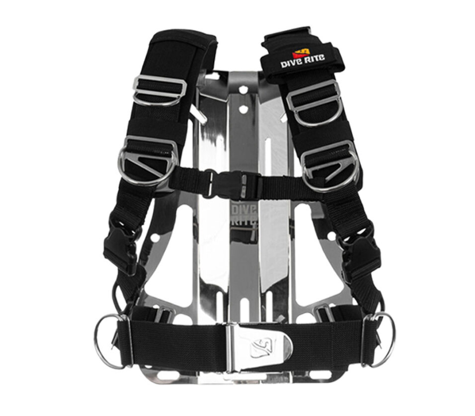 A hybrid harness designed for divers who want the support of a backpack-style harness for better weight-load distribution, yet wish to dive a hard metal backplate. Designed like a mountaineer’s backpack, the TransPlate harness disperses weight across the hips and back, minimizing shoulder strain. When used with a six pound steel backplate, divers can remove or minimize weight pockets. Adjustable straps adapt to a wide variety of exposure suits and means easy donning and doffing. The modular design allows for customization with a wide variety of pockets and accessories. Available in sizes Small through XXL. Note: Stainless steel backplates, XT Lite backplates, and cam straps are sold separately. Made in the USA.