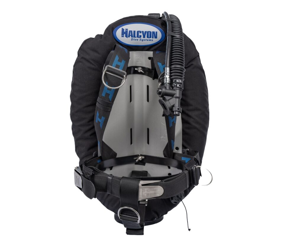 The Halcyon Eclipse™ buoyancy compensator system comes standard with a wing, backplate, harness and crotch strap, harness hardware, and a single tank adapter with cylinder straps. Assembly is required by the user.
